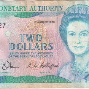 Bermuda 2 dollars 1989 vf currency note