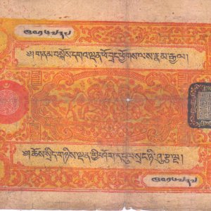 Tibet – 25 srang 1941-1948 scarce currency note w/ hole T5