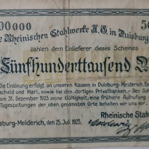Germany / City of Duisburg (Prussian province of Rhine) 500 000 marks vf currency note