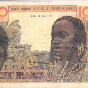 West African States – Ivory Coast 100 Fr. 1959 , vf currency note w/o year