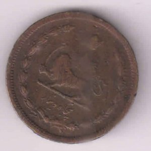 Iran ( Persia) kingdom 50 riyal AH1318 copper coin