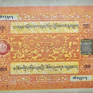 Tibet – 100 srang 1942-1959 scarce currency note T6
