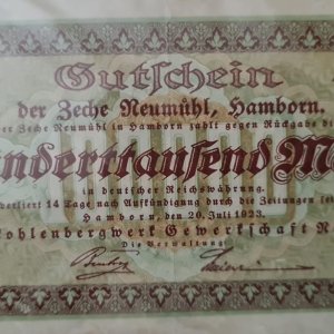 Germany / City of Hamborn (Prussian province of Rhine) 100 000 mark vf currency note