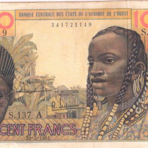 West African States – Ivory Coast 100 Fr. 1961 , vf currency note