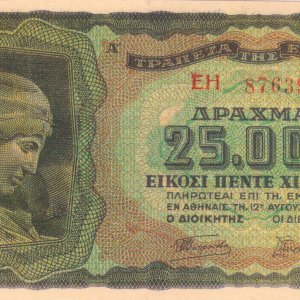 Greece – 25,000 drachamai 1943 Axis occupation aunc currency note