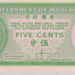 Br. Hong Kong – 5 cents 1961 uniface unc scarce currency note