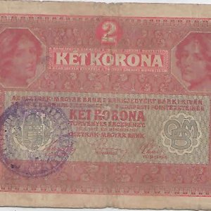 SHS Kingdom Yugoslavia 2 kroner vf currency note ( Stamped over Austrian Currency )