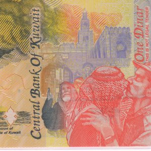 Kuwait 1 dinar commemorative 1993 unc polymer currency note