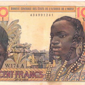 West African States – Ivory Coast 100 Fr. 1959 , used currency note w/o year
