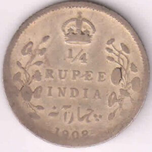 Br. India Edward – 1/4 rupee 1908 silver coin