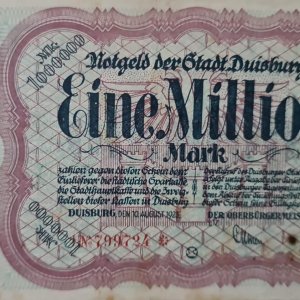 Germany / City of Duisburg (Prussian province of Rhine) 1 000 000 marks 1923 vf currency note