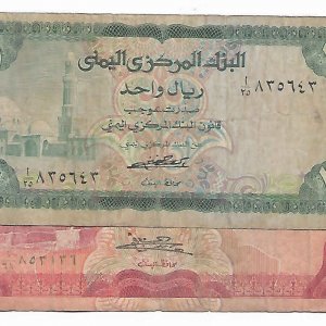 Yemen 1 & 5 rials Vf- 2 currency notes