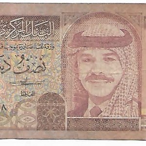 Jordan- 1/2 dinar 1993 vf currency note