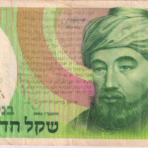 Israel 1 New Sheqel Moses Maimonides 1986 vf currency note