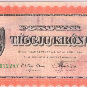 FAEROE ISLANDS – 10 kronur 1949 used currency note