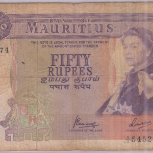 British Mauritius – 50 rupees 1968 vg currency note PCGS graded 15