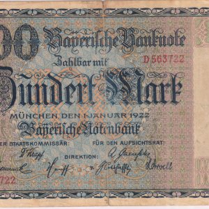 Bavaria / German state – 100 marks 1922 vf currency note / edge missing