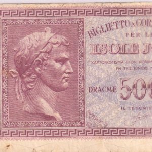 Ionian Islands United States / Greece , 1941 ,500 Dracme Italian occupation scarce currency note