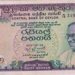 Sri Lanka – 50 rupee 1972 scarce currency note