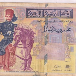 Tunisia 20 dinars 1992 vf currency note