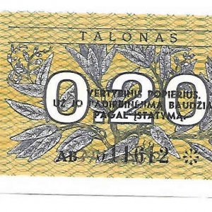 Lithuania 0.20 talonas vf currency note