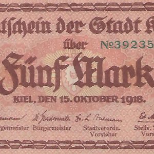 Germany / City of Kiel (notgeld) (Prussian province) 5 marks 1918 xf currency note