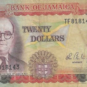 Jamaica – 20 dollars 1983 vf currency w/ pen writting