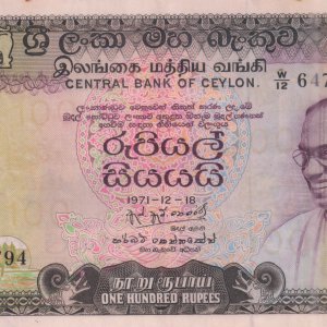 Sri Lanka – 100 rupee 1971 scarce currency note
