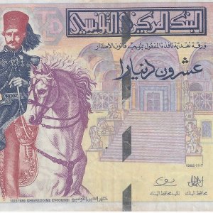 Libya – 5 dinars 1972 vf currency note w/ stain