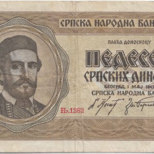 Serbia German Occupation WWII ,50 Dinara 1942, vf currency note