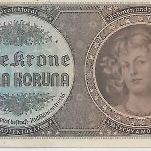 BOHEMIA & MORAVIA German occupation – 1 korun 1940 xf currency note