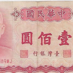 Taiwan 100 yuan 1987 vf currency note