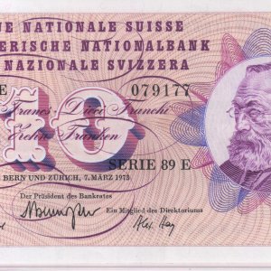 SWITZERLAND – 10 Francs 1968 – 79 unc currency note