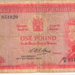 Rhodesia – 1 pound 1964 scarce currency note