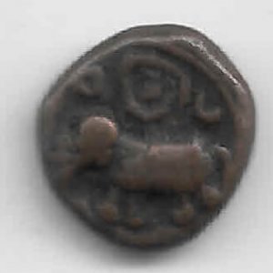 Vijaya Nagar – Bull to left , 1509 – 30 Krishna devaraya , copper coin VJ10