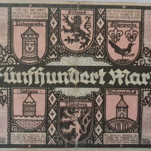 German notgeld › District of Liebenwerda (Prussian province of Saxony 500 marks 1933 vf scarce currency note