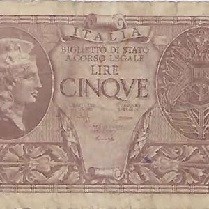 Italy – 5 lire 1944 vf currency note