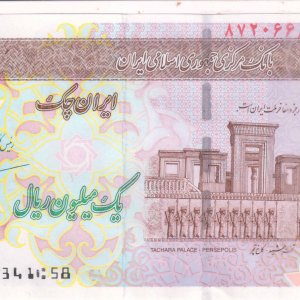 Iran – 1,000,000 rials ( 1 million) 2008 unc cheque currency note