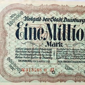 Germany City of Duisburg (Prussian province of Rhine) 1000 000 mark 1923 vf currency note