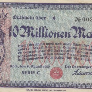 Germany / City of Cologne (notgeld) (Prussian province of Rhine) 10 000 000 marks 1923 currency note