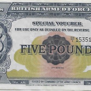 British armed forces – 5 pounds special voucher 1948 2ns series unc currency note
