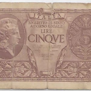 Italy – 5 lire 1944 vf currency note