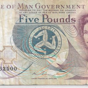 Isle of man – 5 pounds 1990 – 91 vf currency note