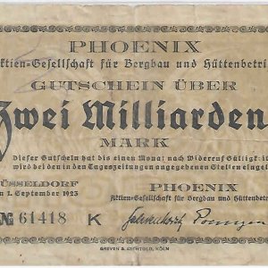 Germany City of Düsseldorf (Prussian province of Rhine) 2 million mark vf currency note