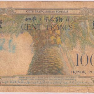 French Somaliland ( Djibouti ) 100 frs 1952 scarce currency note