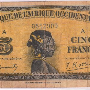French West Africa – 5 francs 1941 used currency note