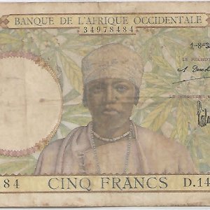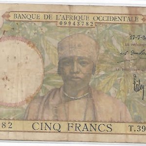 French West Africa – 5 francs 1941 used currency note