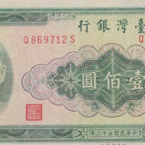 Taiwan 100 dollars 1970 vf+ currency note