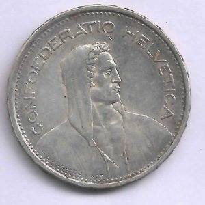 Switzerland – 1 Franc Helvetia standing; 1963 silver coin