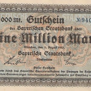 Germany / Bavaria Federal state 1 million 1923 unc currency note